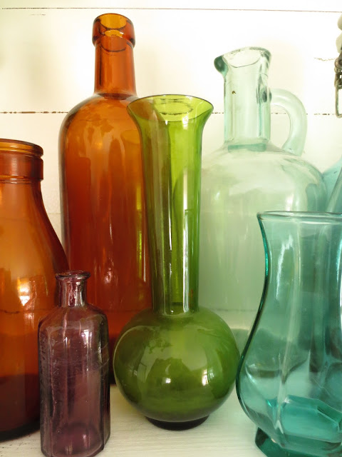 Här är en till som samlar på flaskor och glas....har faktiskt några riktigt gamla turkosa flaskor med etikett från min pappas ungdom..och dom tror jag är "ganska" värdefulla....iaf för mej ;))) (pappa är ju 88 år så....)